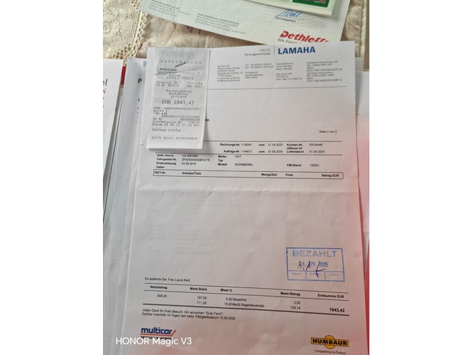 Vi sælger vores autocamper af tidsårsager.autocamperen blev købt af os meget velholdt, og vi har også altid vedligeholdt den meget godt.autocamperen sælges på anmodning med en ny MOT.sidste år havde den en inspektion med olieskift og hvad der hører til det,faktura over 1000€present.Derudover blev bremserne fuldstændigt fornyet sidste år foran og bagpå.helårsdæk 225/75R16 kom nye i 2023 og er i god stand.højkvalitets mårafskrækkende installeret i motorrummet.autocamperen er generelt i god stand ude og inde, med de sædvanlige små tegn på slid.bageste bagagebærer Thule V16 højdejusterbar (2021 ny). Solpaneler installeret på taget.to batterier i interiøret, starter og bord.tv og fuldautomatisk satellitsystem TELECO med LED-tv.duomatisk parkeringsvarmer til opvarmning under kørsel.Fiat LED-kørelys.to gasflasker.stort bageste badeværelse med separat bruser og toilet (rumbadeværelse).stort køleskab med fryserum.indbygget i den indvendige nedsænkbare seng, hvilket giver masser af plads.opvarmet spildevandstank.fartpilot og indbygget computer.3-brænder gaskomfur.udvendigt.Masser af opbevaringsplads inde og ude.fører- og passagersæder er pilotsæder og kan drejes.alle former for campingtilbehør.nye indvendige gulvmåtter,ny termomåtte til forruden.alle vinduer og ovenlysvinduer med plisségardiner og myggenet,også sideindgangsdør.Kendte fejl: Læder på førersædet lidt revnet, plisségardin på passagerdøren repareret ved håndtaget, men fungerer, PVC-gulvbelægning lidt bølget et sted, men intet ødelagt, ingen økonomisk nødsalg.