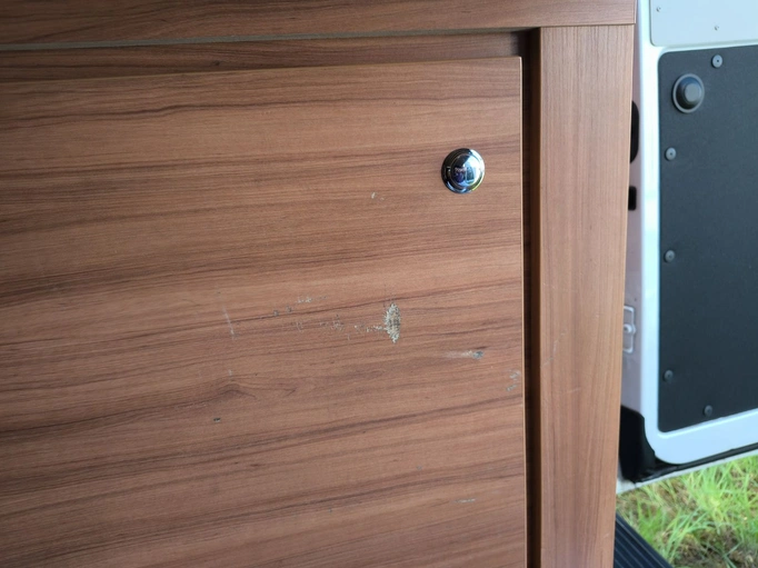 Repareret vandindtrængning ved bagdøren.